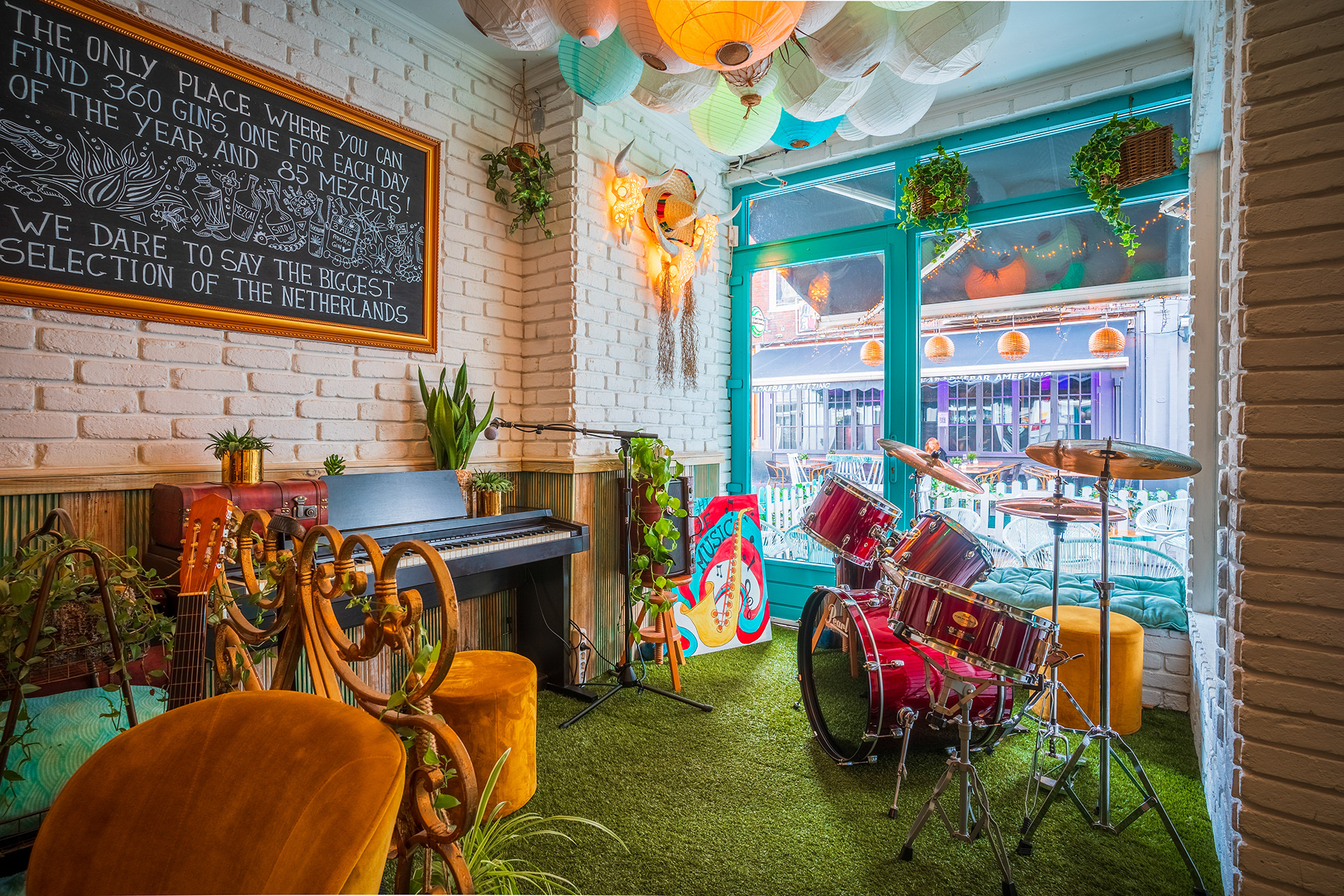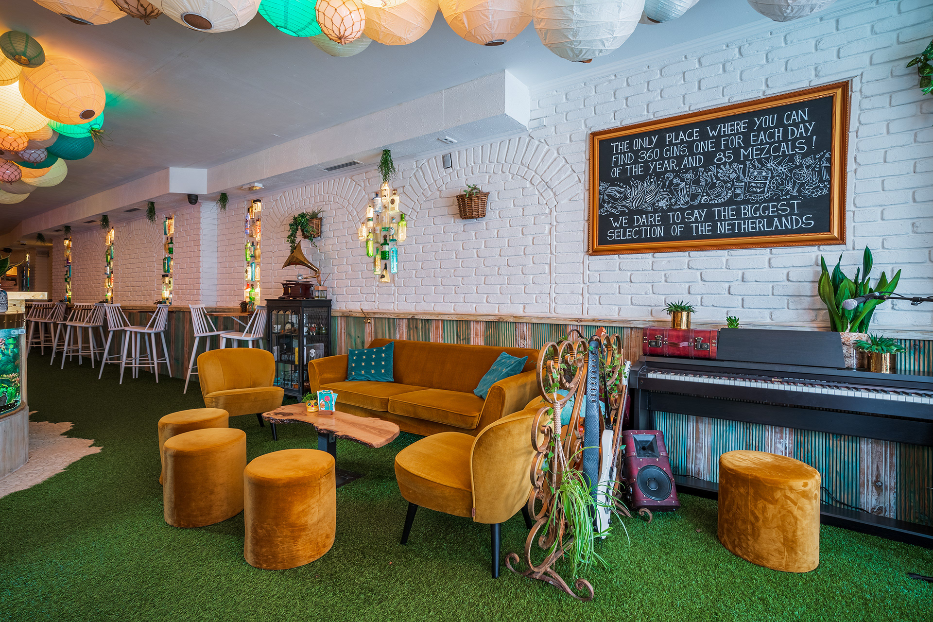 Compared to the majority of Dutch bars and pubs I decided to create a brighter interior filled with lights to recall the Mediterranean atmosphere.